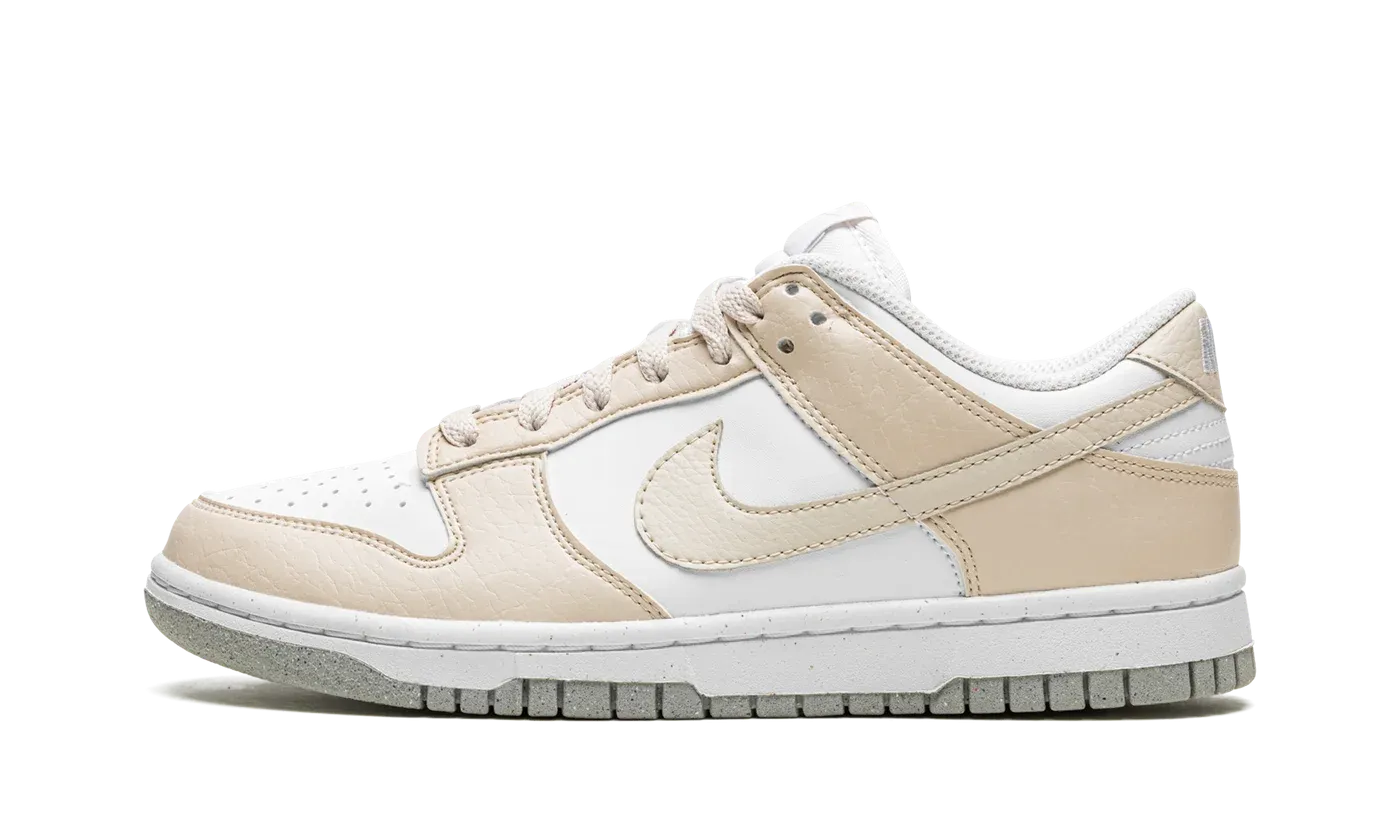The Women's Nike Dunk Low Next Nature "Light Orewood Brown" is a versatile colorway of the vintage basketball shoe for women constructed from at least 20% recycled content by weight. Nike's "Move to Zero" initiative that aims to reduce its carbon footprint is progressed by the release of the "Light Orewood Brown" Dunk, which is designed in a classic two-tone style. Specifically, the shoe's white leather base is paired with light brown leather overlays. A Light Orewood Brown leather Swoosh resides on either side. A two-tone, white midsole and light brown rubber outsole finish off the appealing Dunk Low for women.