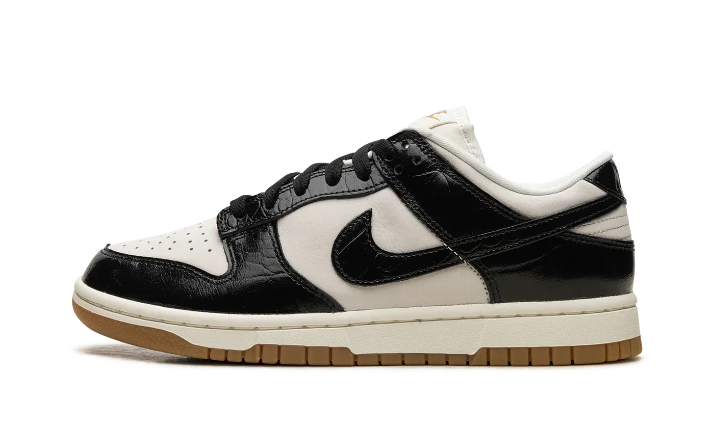 The Women's Nike Dunk Low LX "Black Croc" is a women's-exclusive colorway of the retro basketball shoe with glossy black faux croc leather details. A premium look for the always-popular Dunk Low, the "Black Croc" is complete with a Sail leather base and black patent croc leather overlays and Swoosh branding. Metallic Gold "Nike" and Swoosh branding on the tongue exudes a luxurious vibe. Debossed "Nike" detailing can be found on the heel. Underfoot, the midsole has an aged aesthetic. A gum rubber outsole completes the look. Release date: April 5, 2024
