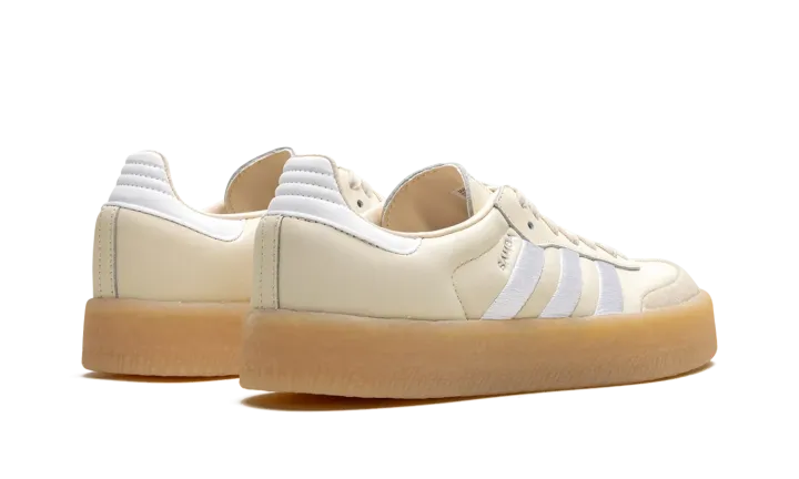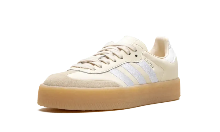 The Women's adidas Sambae "Wonder White/Gum" is a women's-exclusive colorway of the alternate version of the retro shoe. Based on the adidas Samba OG model, the adidas Sambae features contemporary details such as a thick rubber midsole that gives the shoe a platform-style appearance. Here, the upper has a Wonder White leather construction with oversized white embroidered Three Stripes on the sides. A white leather panel appears on the heel, while classic adidas branding can be found on the tongue. The platform sole in gum rubber completes the look.