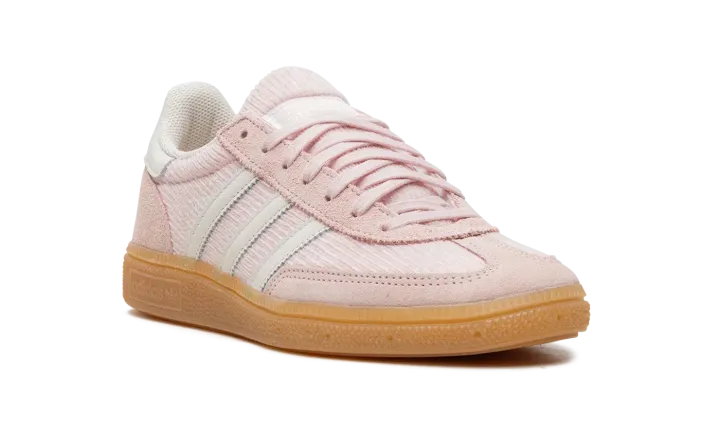 Add a soft touch to your sneaker collection with the Adidas Handball Spezial "Sandy Pink." This classic silhouette is presented in a delicate Sandy Pink hue, offering a subtle yet stylish aesthetic. The iconic Handball Spezial details maintain the sporty heritage, while the soft color adds a feminine touch.