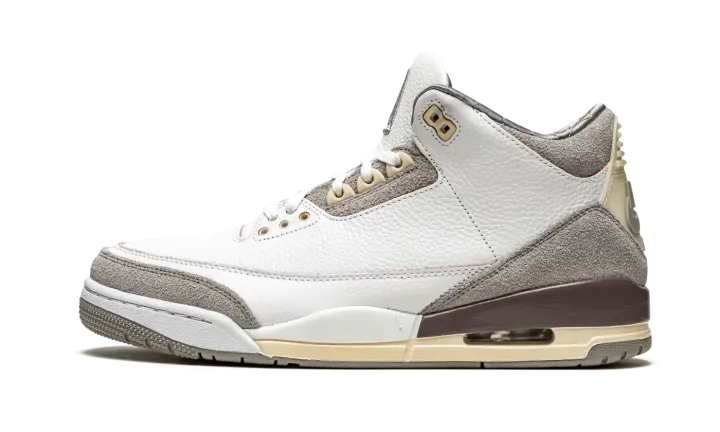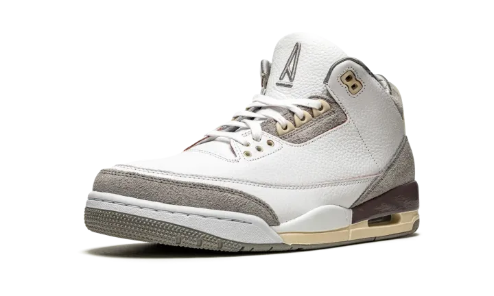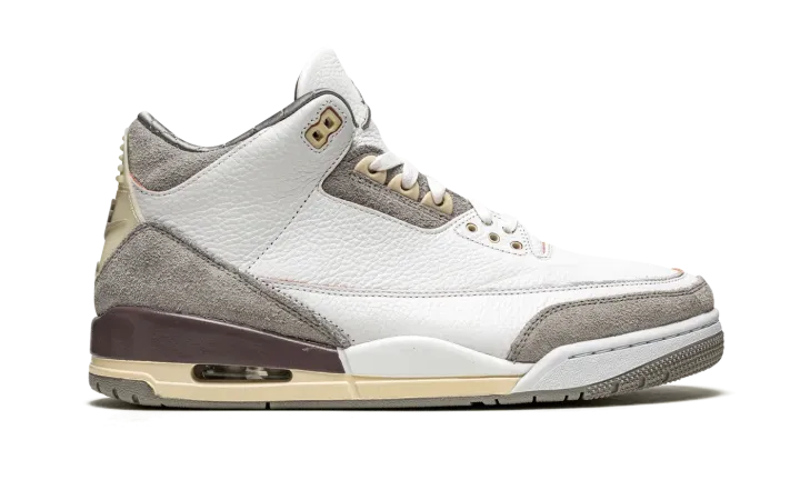 A Ma Maniére x Air Jordan 3 "Violet Ore" is a limited edition collaboration between the Atlanta based retailer and Jordan Brand on Michael Jordan's enduring third signature shoe. An unmistakable vintage aesthetic highlights the styling of the "Violet Ore," A Ma Maniere's first collaboration with Jordan following its "Hand Wash Cold" capsule with Nike in 2019. The white tumbled leather upper is paired with buttery grey suede on the toe, eyelets, collar, and heel. Cream accenting on the lace holes and the heel counter with the Jordan 3's original "Nike Air" branding mimic the look of design elements that have undergone the process of oxidation. The midsole is painted a shade of Violet Ore and dual A Ma Maniére and Jumpman insignia mark the left and right tongues, respectively. Underfoot, a small visible Air unit inside of the pre-yellowed midsole gives this Jordan 3 an intentionally aged look. Release date: April 28, 2021.