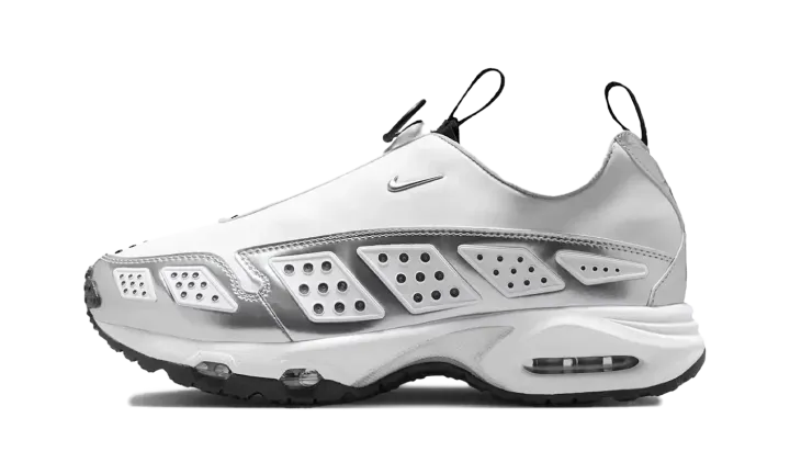 The Nike Air Max SNDR (Sunder), a futuristic cross-trainer originally released in '99, returns with a sleek, high-shine aesthetic in this Women's Exclusive "White Metallic Silver" colorway. This special edition (SE) blends its innovative, space-age design with a clean, versatile color palette.