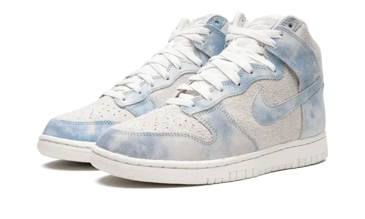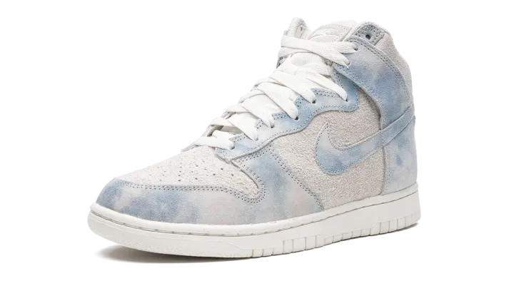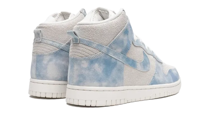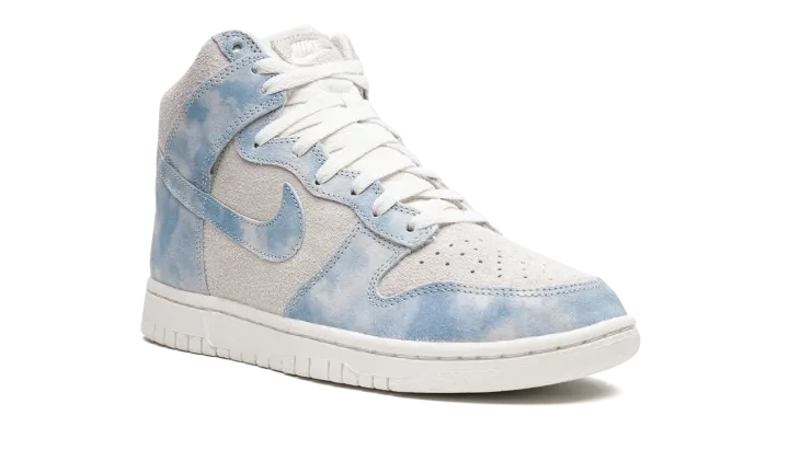 The Women's Nike Dunk High "Clouds" is a women's-exclusive colorway of the retro basketball shoe with cloud graphics on its overlays. A summertime-inspired look, the Dunk High "Clouds" features Sail-colored suede panels paired with overlays and Swoosh branding with a cloud-like print. A suede tongue tag with debossed "Nike" and Swoosh detailing adds to the look. A Sail rubber midsole and outsole complete the design. Release date: March 1, 2023